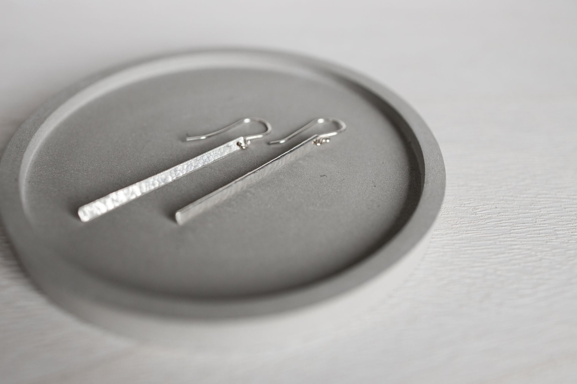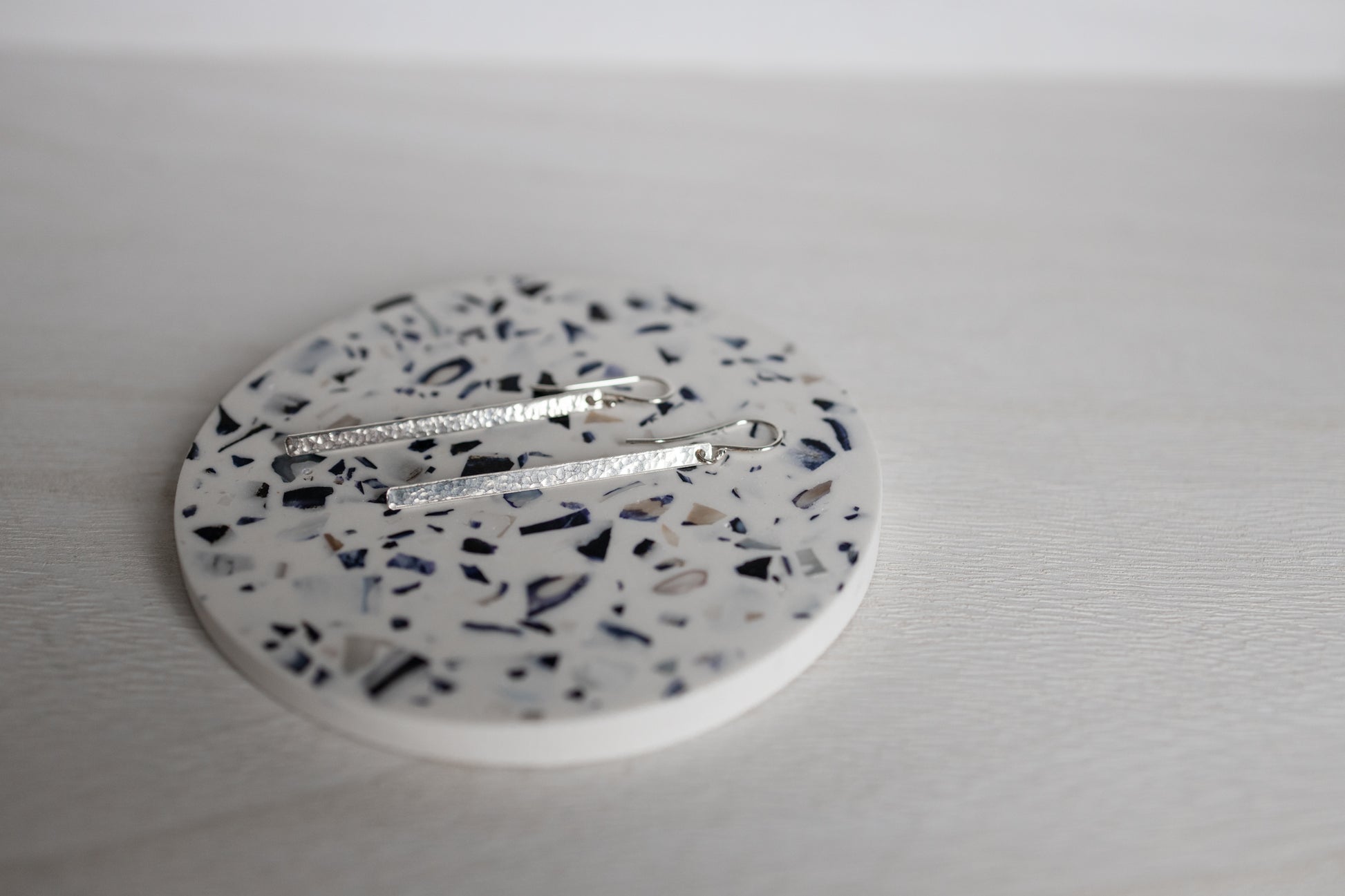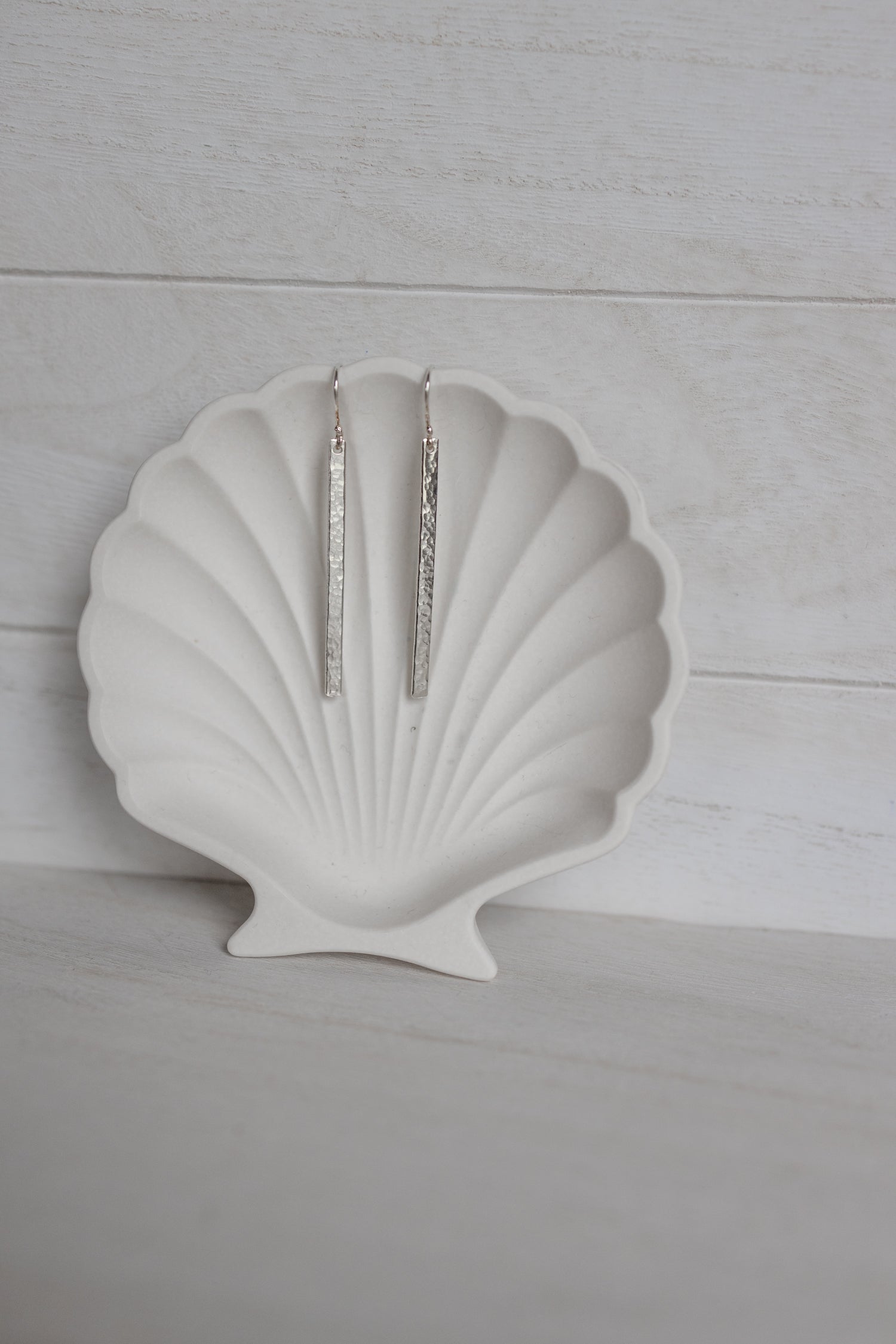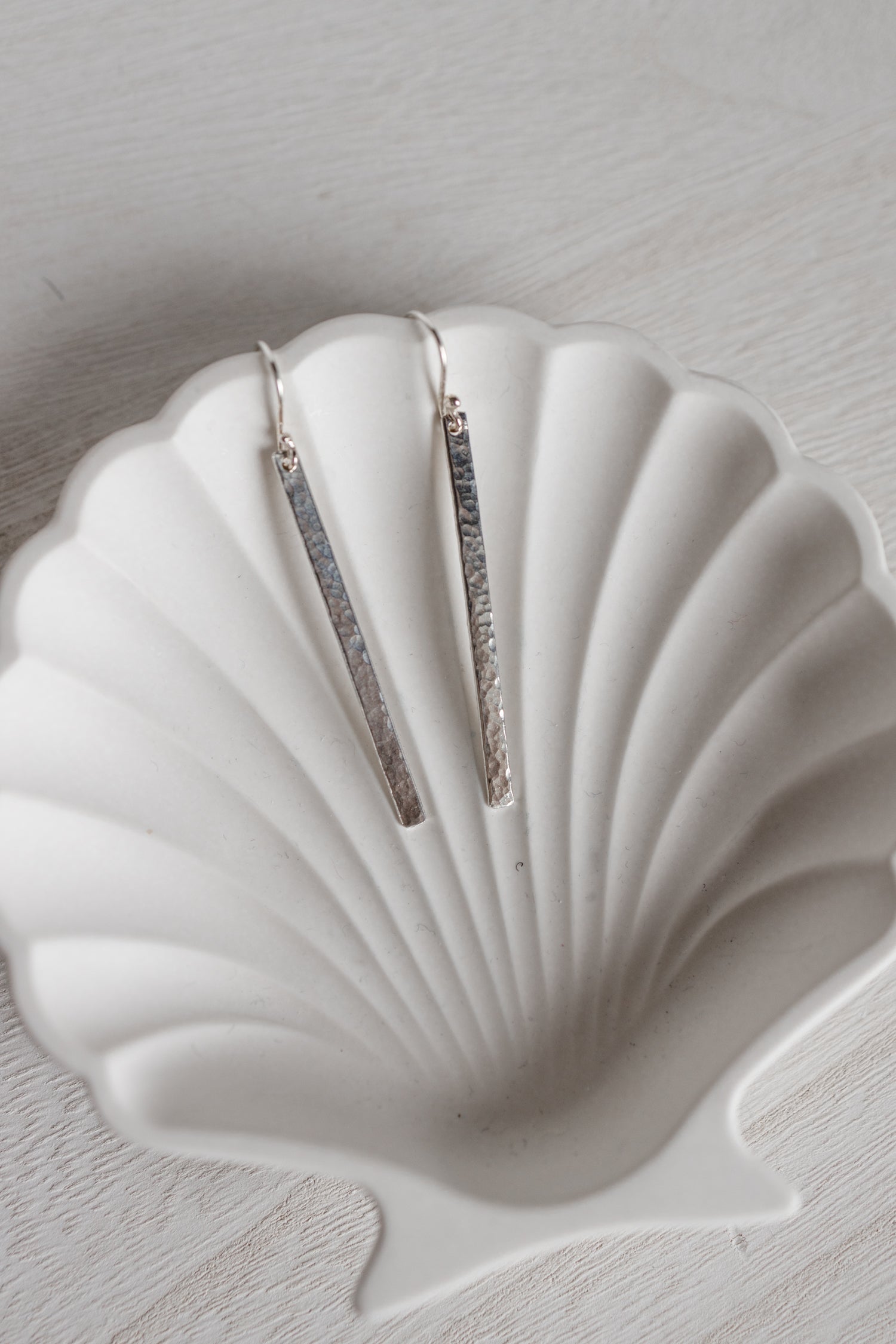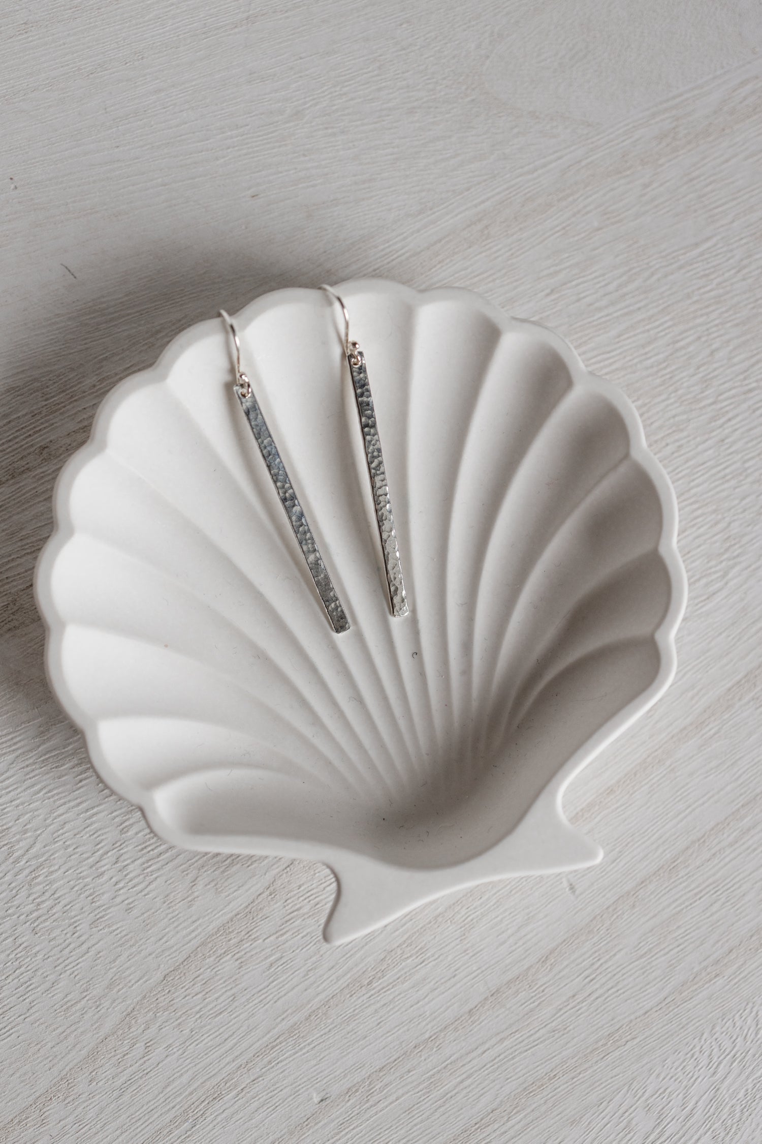 One of our best sellers, these elegant long bar earrings have a unique textured finish so that they catch the light and sparkle, just like ocean ripples.
